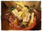 Je nach Jahreszeit und Anlass werden die Geschenkskörbe wundervoll dekoriert und in Zellophan Folie verpackt.